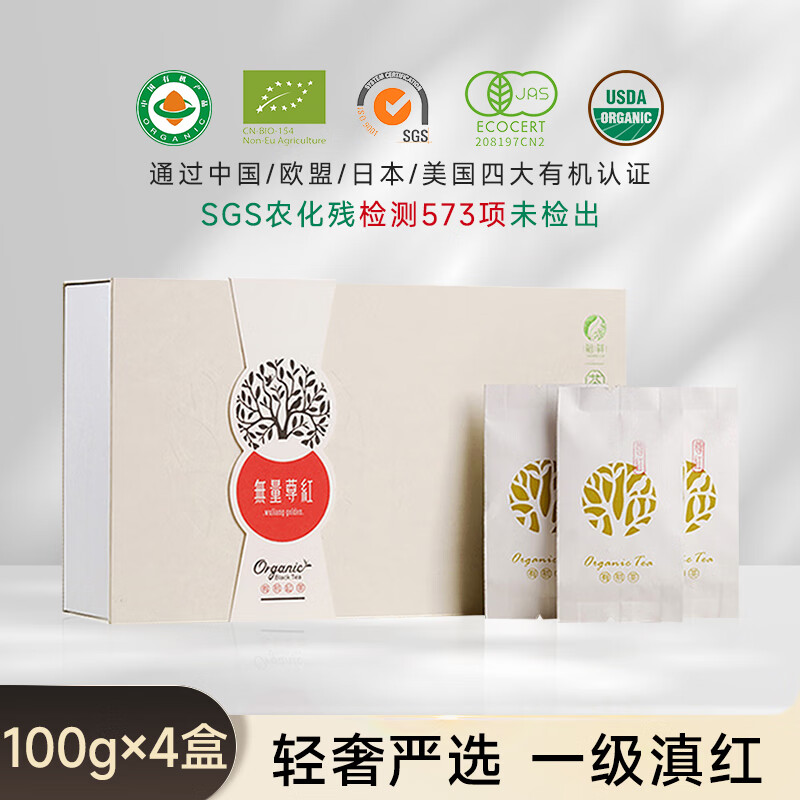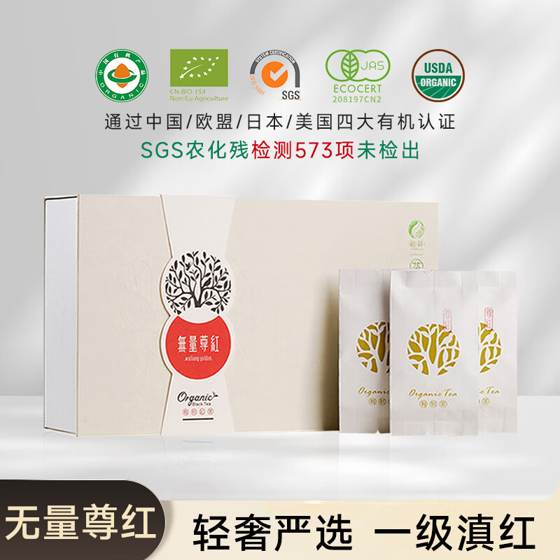 祖祥有机茶 无量尊红 云南十大名茶家庭装有机滇红茶180g 180g