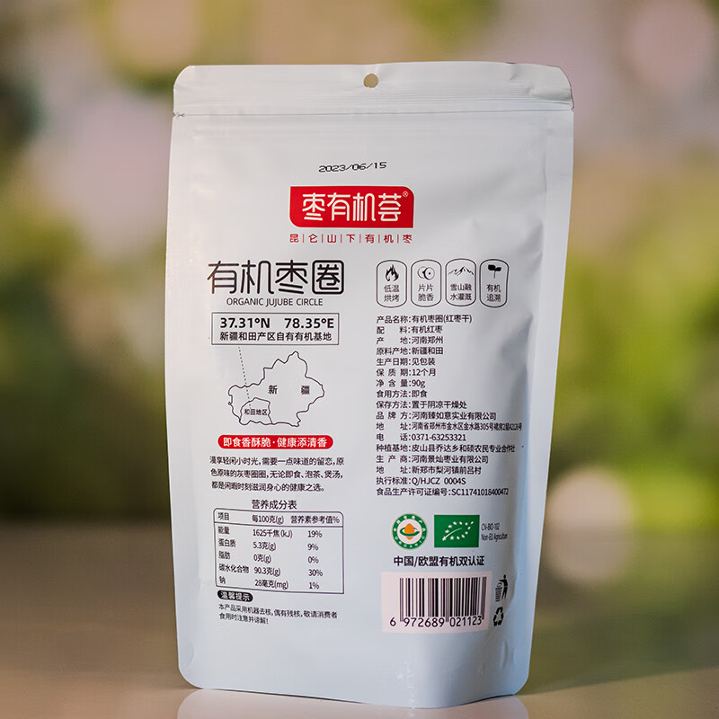 枣有机荟有机新疆纯净红枣500g即食高品质香甜食皮薄有机红枣