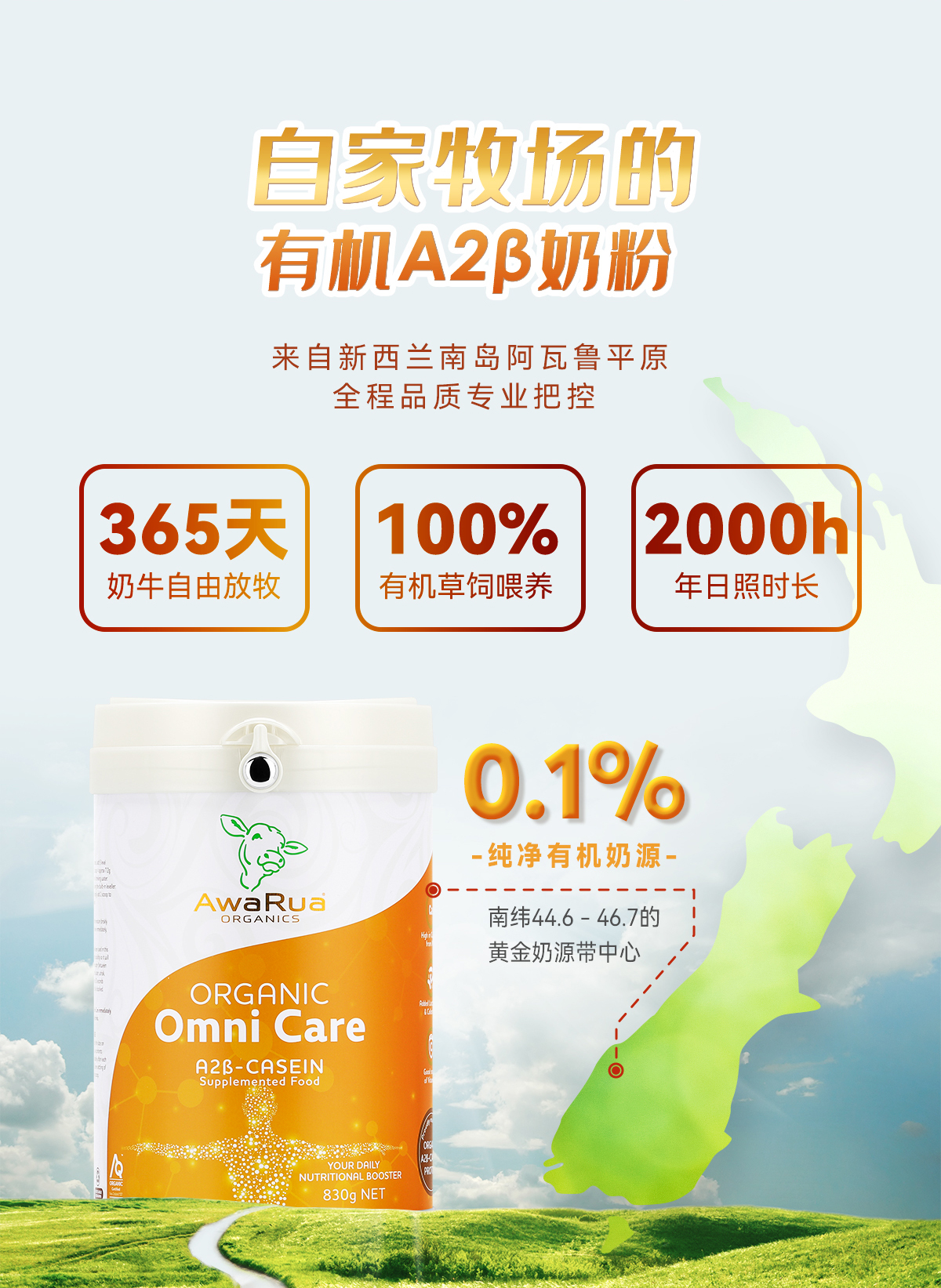 新西兰进口 阿瓦鲁A2有机成人全脂奶粉(罐装)830克