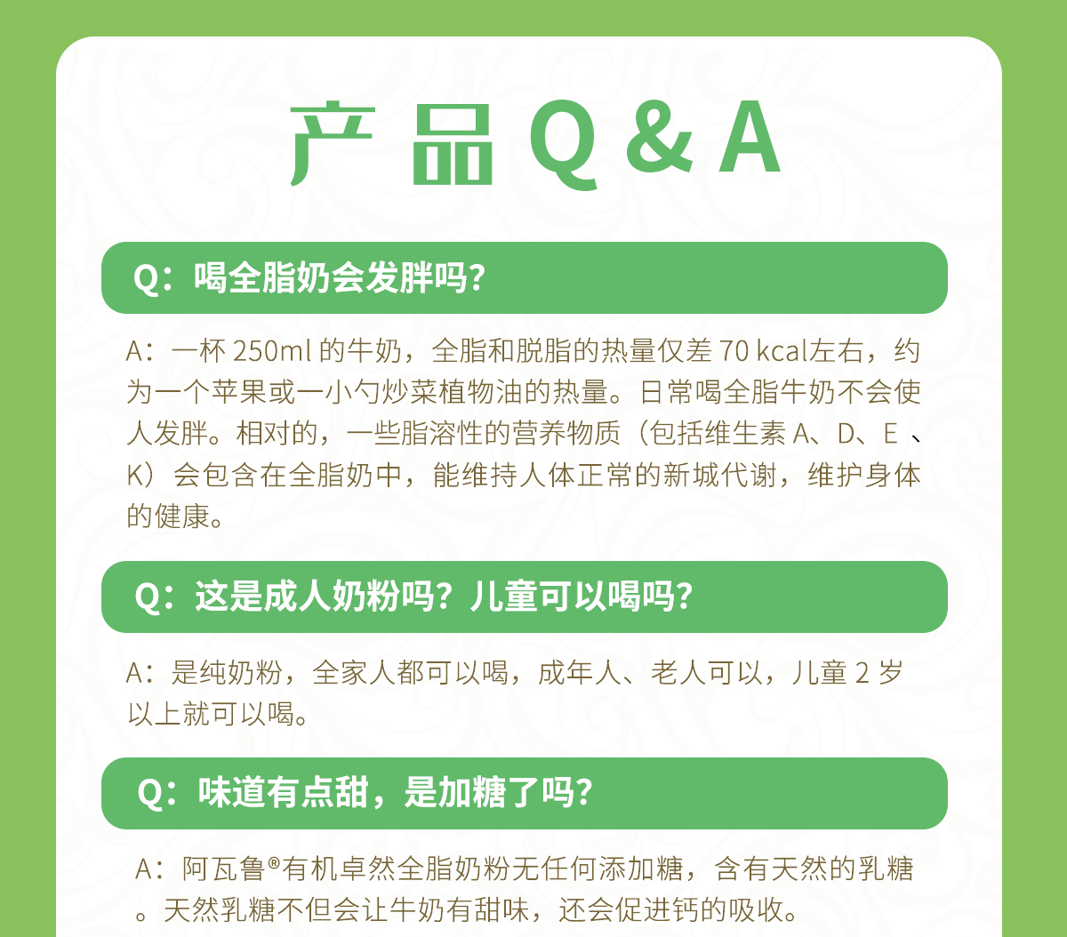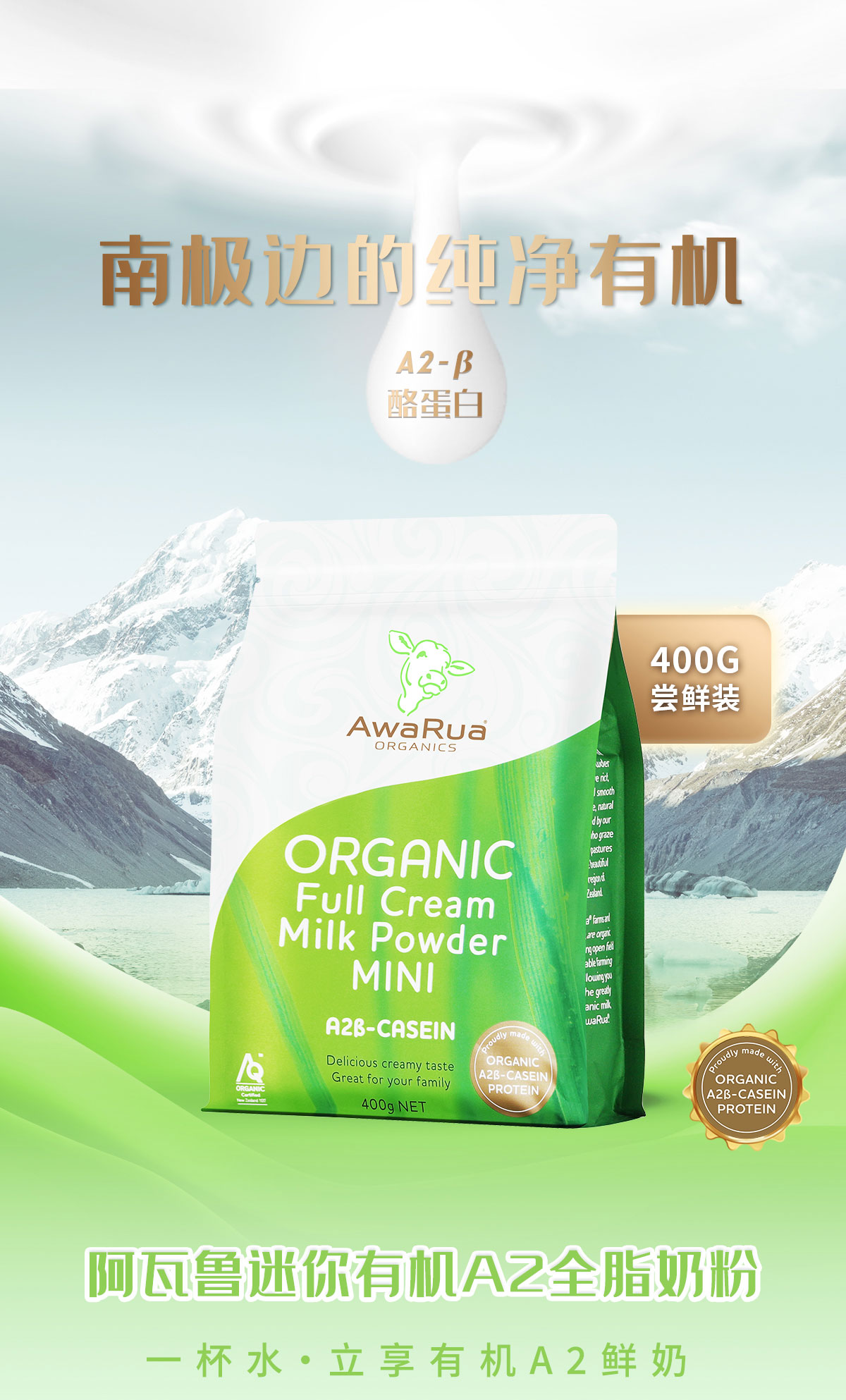 新西兰进口 阿瓦鲁A2有机全脂奶粉(袋装)800克