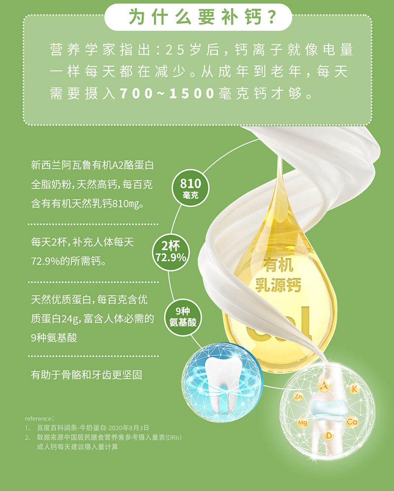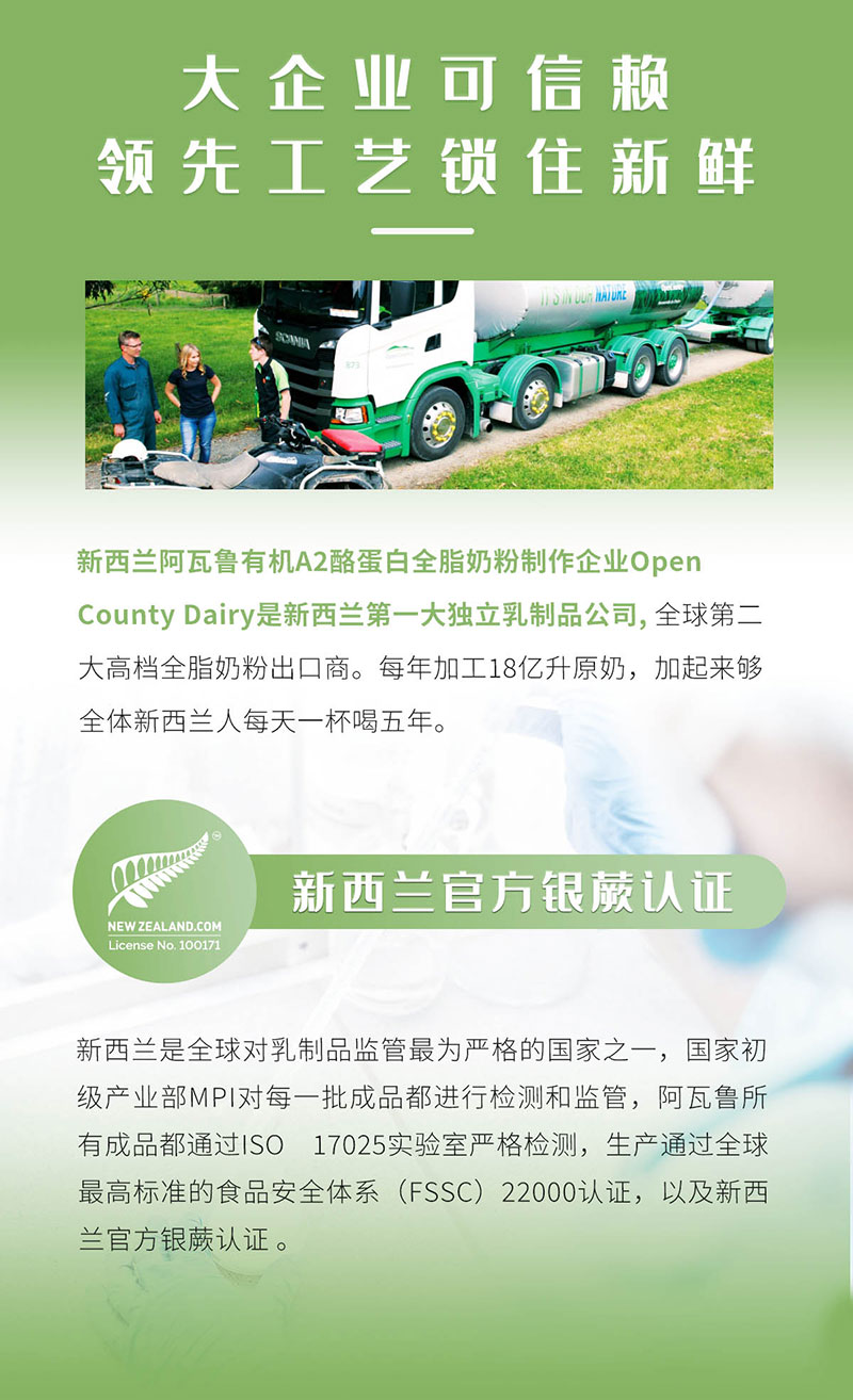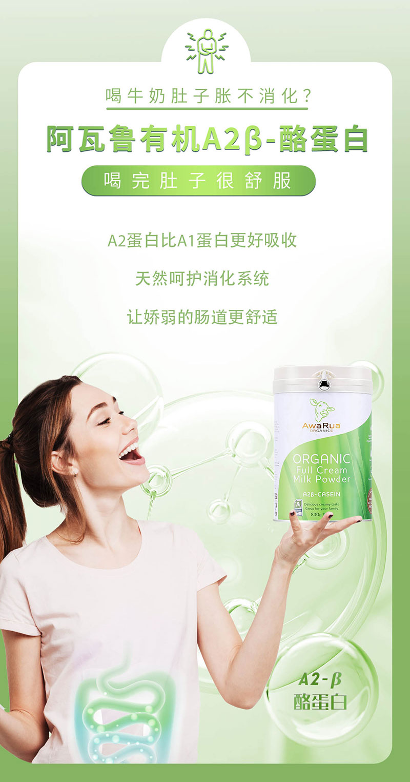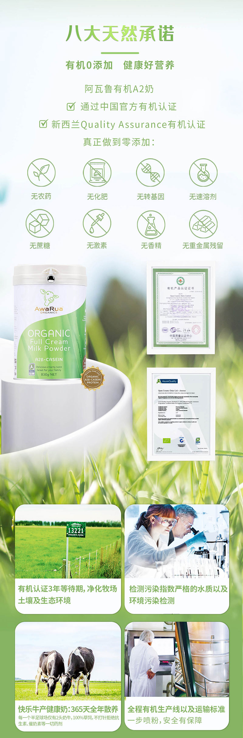 新西兰进口 阿瓦鲁A2有机成人全脂奶粉(罐装)830克